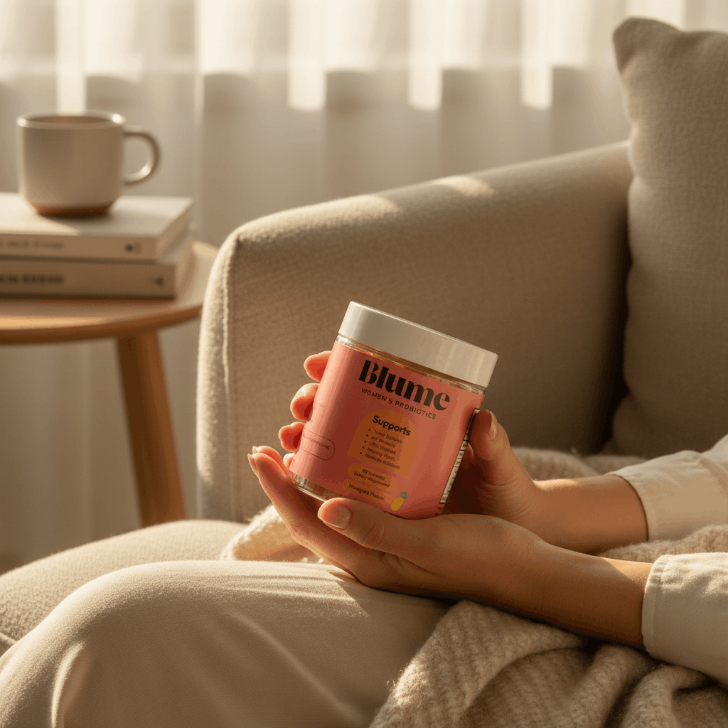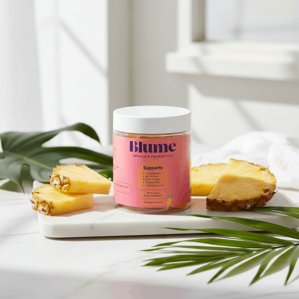 Blume® is a daily probiotic designed to support vaginal balance from within. It helps support the vaginal microbiome, moisture, and freshness, which can contribute to overall vaginal comfort and confidence when used consistently.